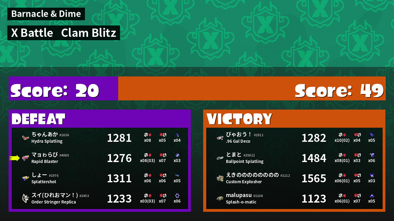 | Medals | #1 Overall Splatter #1 Popular Target #1 Splat Assister | ||