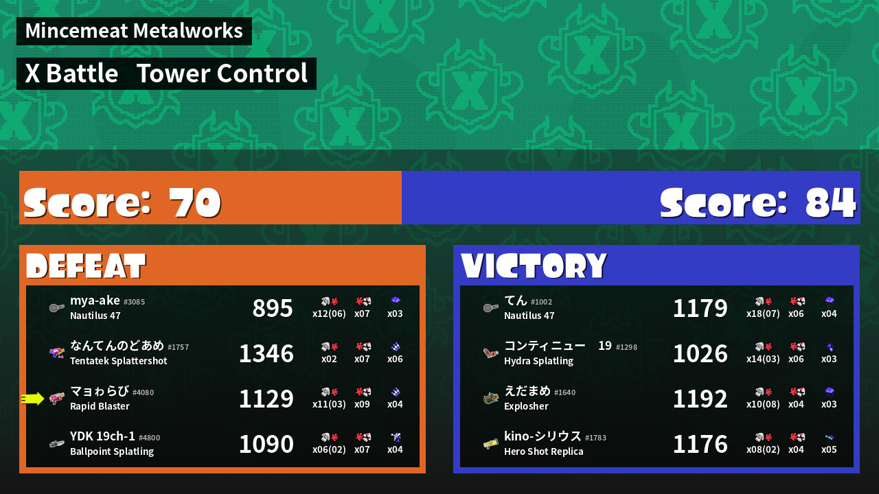 | Mode | Tower Control - X Battle | ||