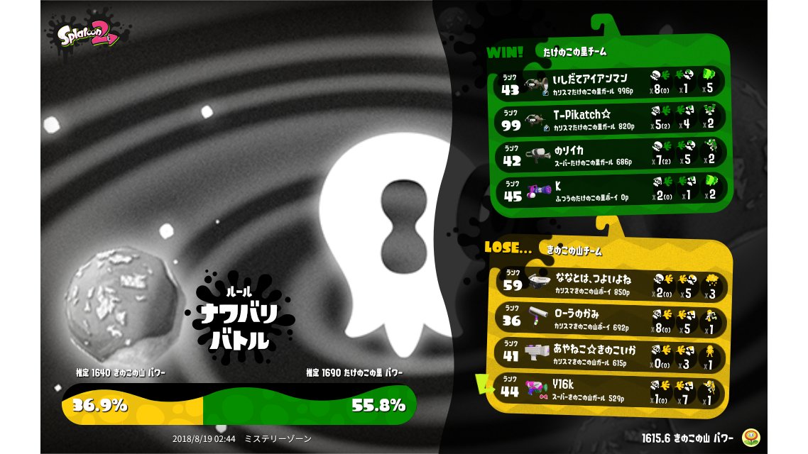 | Splatfest Title | きのこの山 Defender 26 → きのこの山 Defender 28 | |||||||||||||||||||||||||||||||