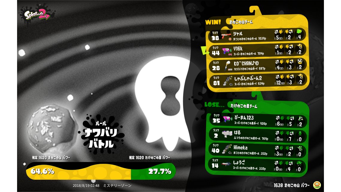 | Splatfest Title | きのこの山 Defender 28 → きのこの山 Defender 34 | |||||||||||||||||||||||||||||||