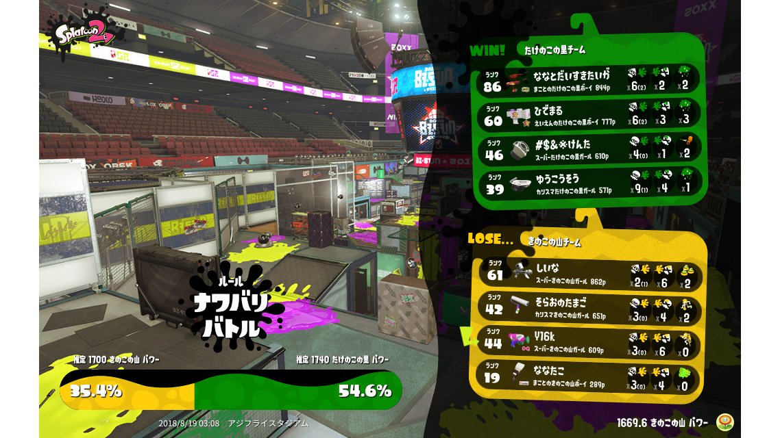 | Splatfest Title | きのこの山 Defender 48 → きのこの山 Champion 0 | |||||||||||||||||||||||||||||||