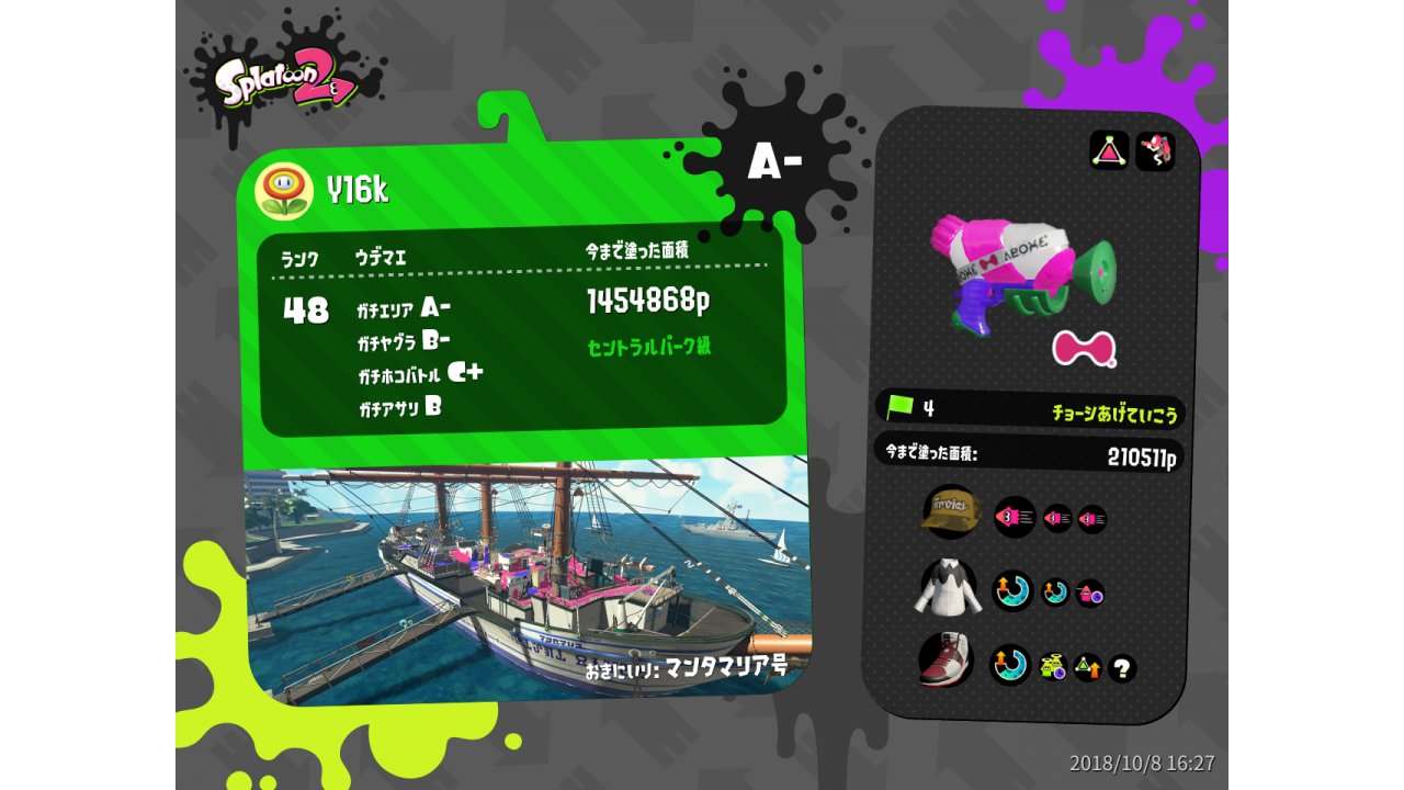 | Weapon | Tentatek Splattershot ( Splat Bomb, Inkjet) | ||||||||||||||||||||||||||||||||||
