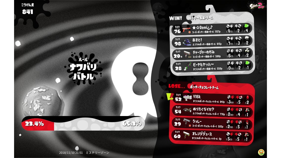 | Splatfest Title | ポッキーチョコレート Fiend 152 → ポッキーチョコレート Fiend 172 | |||||||||||||||||||||||||