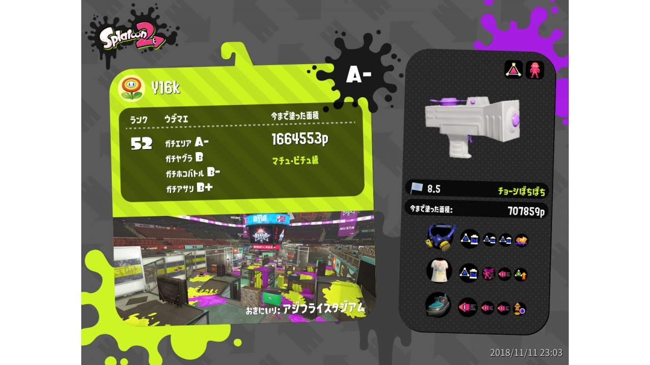 | Weapon | Splattershot Jr. ( Splat Bomb, Ink Armor) | |||||||||||||||||||||||||||||||||||||