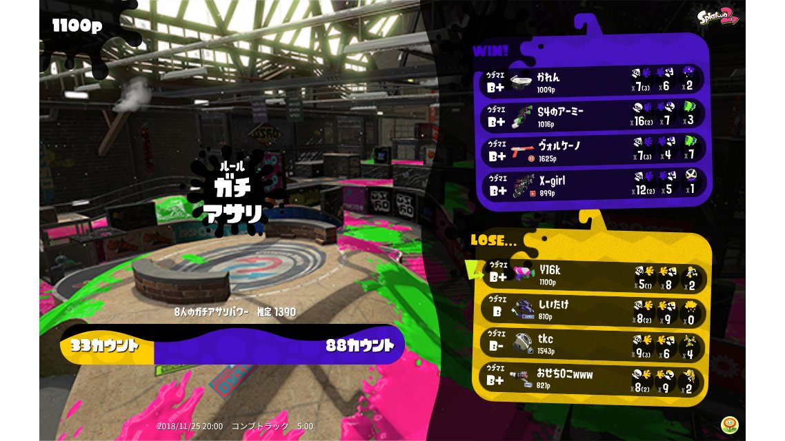 | Name | Weapon | Level | Rank | Inked | k+a/sp | k/d |