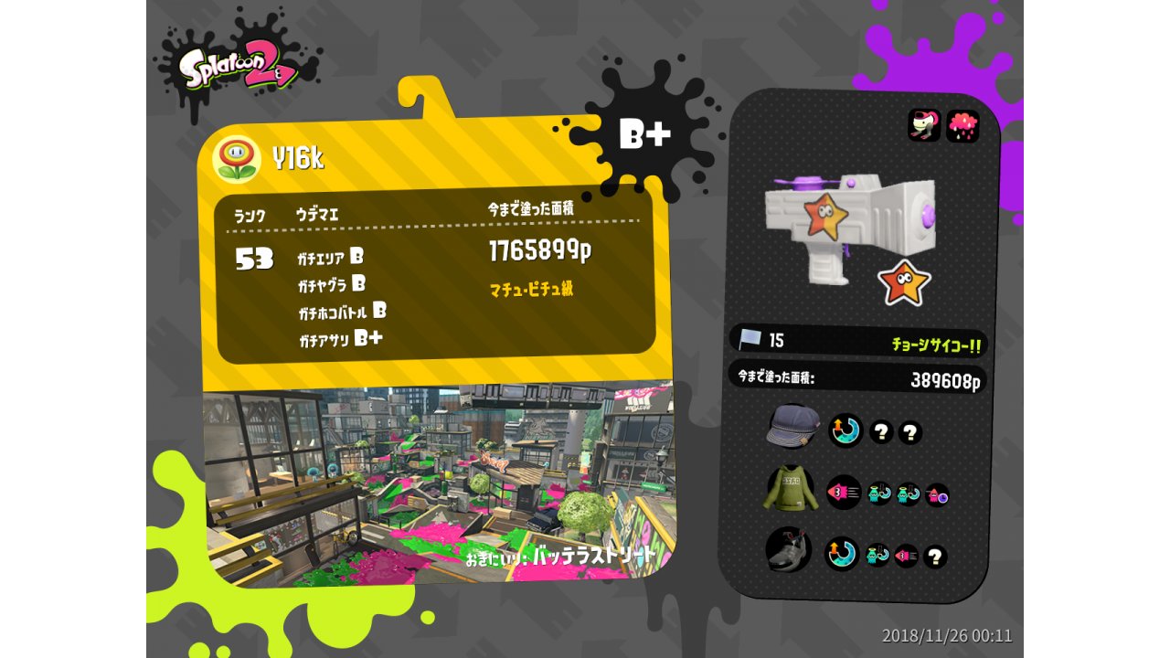 | Name | Weapon | Level | Rank | Inked | k+a/sp | k/d |