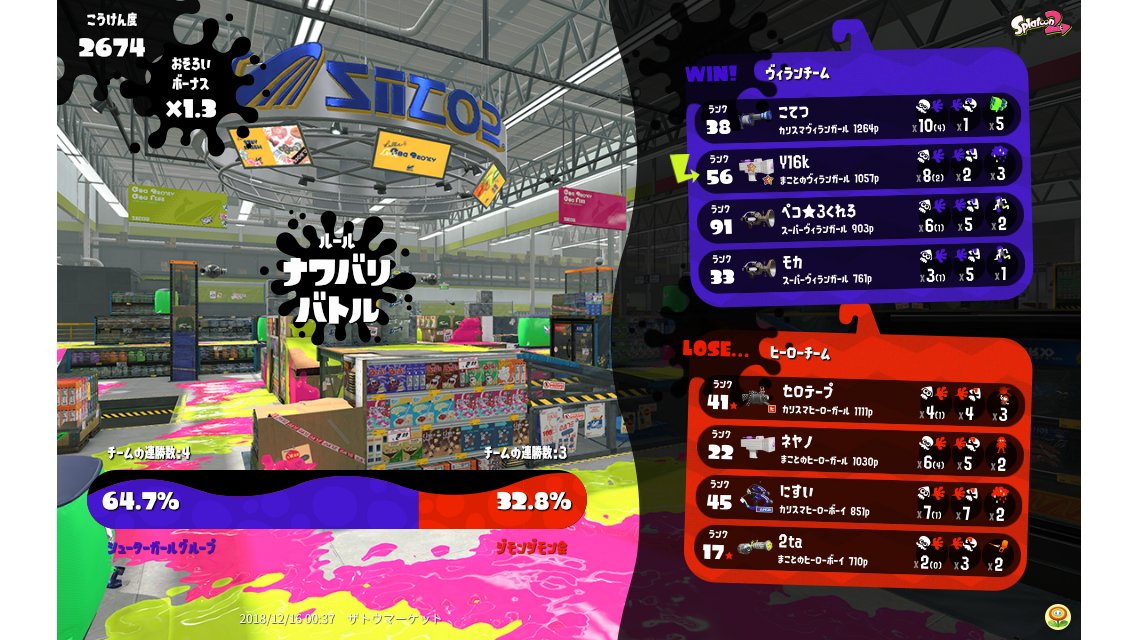 | Splatfest Title | ヴィラン Fiend 169 → ヴィラン Defender 36 | ||||||||||||||||||||||||||||||||||