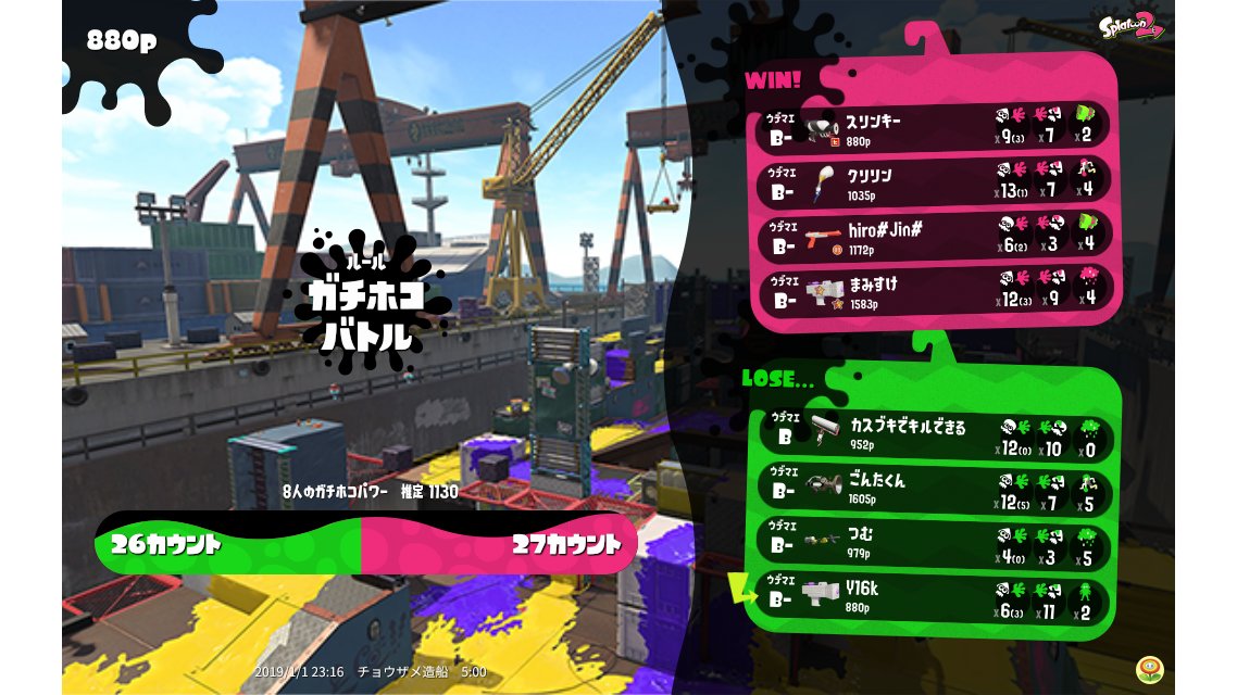 | SplatNet Battle # | 2,508 | |||||||||||||||||||||||||||||||||||||