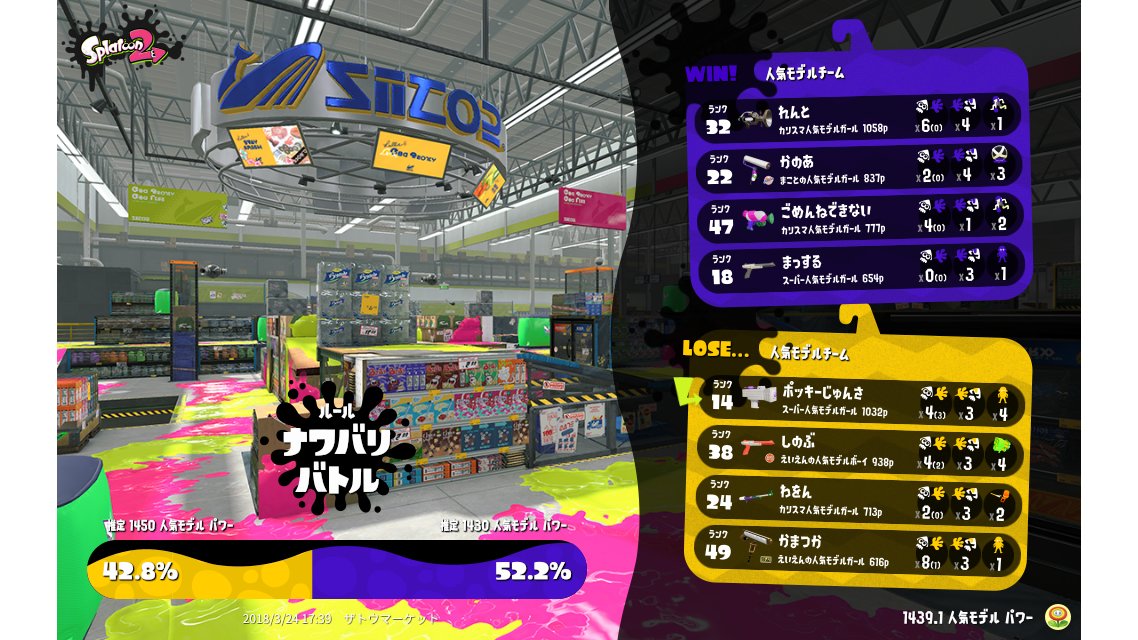 | SplatNet Battle # | 143 | ||||||||||||||||||||||||||||||||||