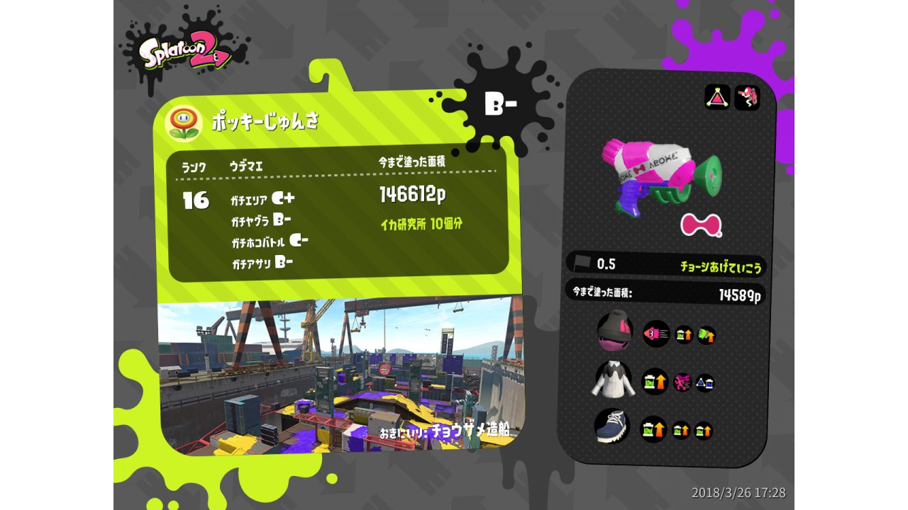 | Name | Weapon | Level | Rank | Inked | k+a/sp | k/d |