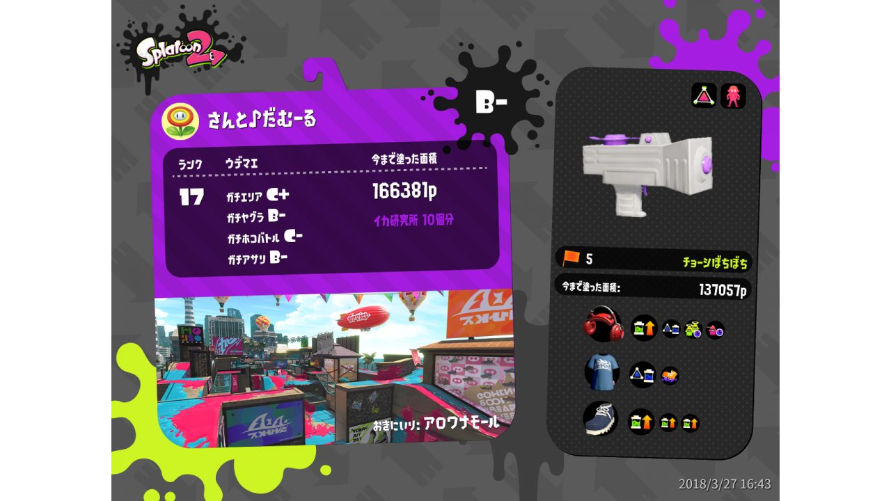 | Weapon | Splattershot Jr. ( Splat Bomb, Ink Armor) | ||||||||||||||||||||||||||||||||||