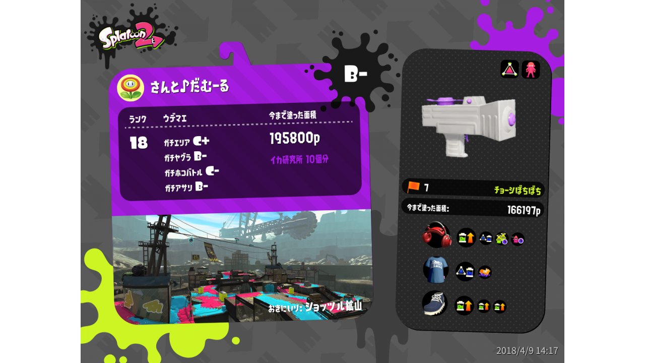 | Weapon | Splattershot Jr. ( Splat Bomb, Ink Armor) | ||||||||||||||||||||||||||||||||||