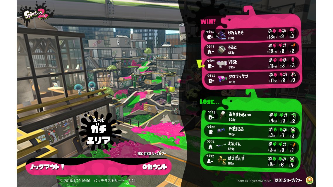 | Mode | Splat Zones - League Battle (Twin) | ||||||||||||||||||||||||||||||||||