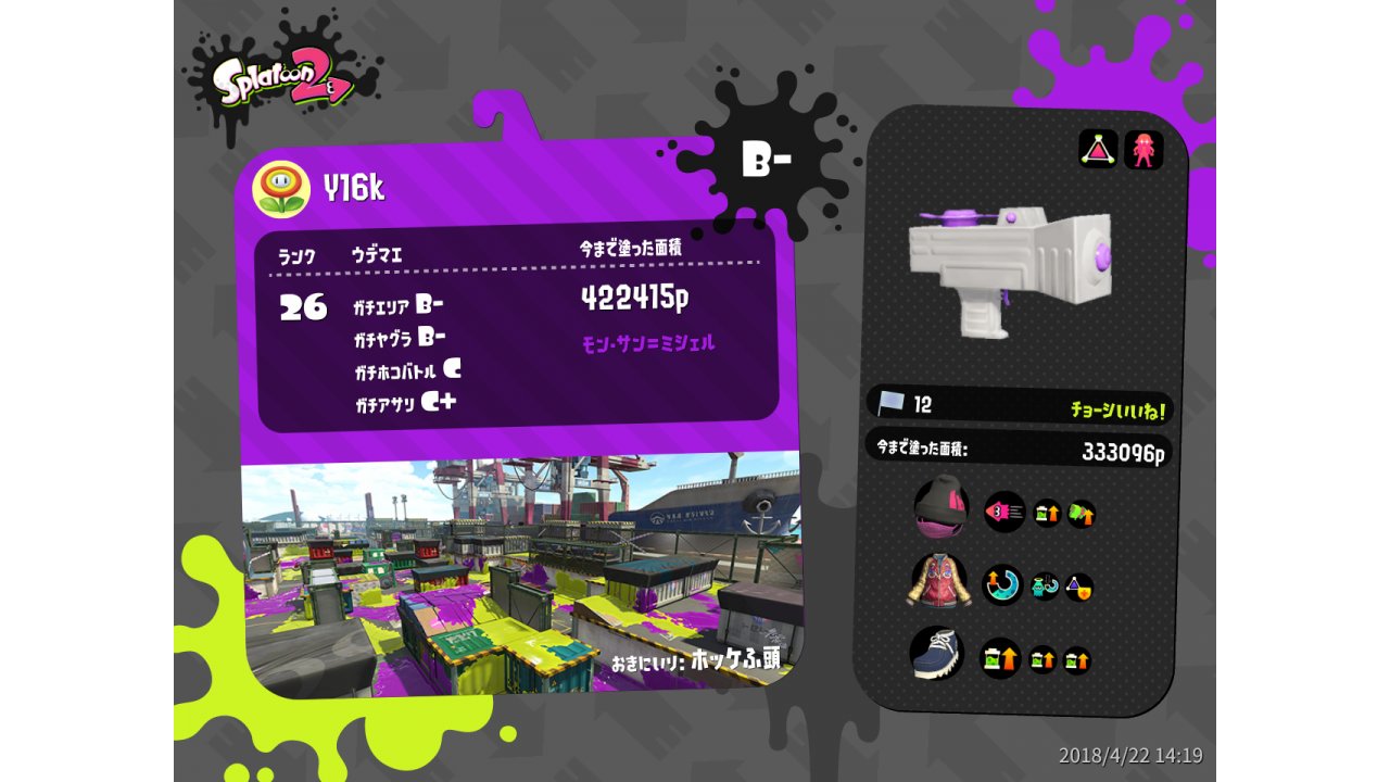 | Name | Weapon | Level | Rank | Inked | k+a/sp | k/d |