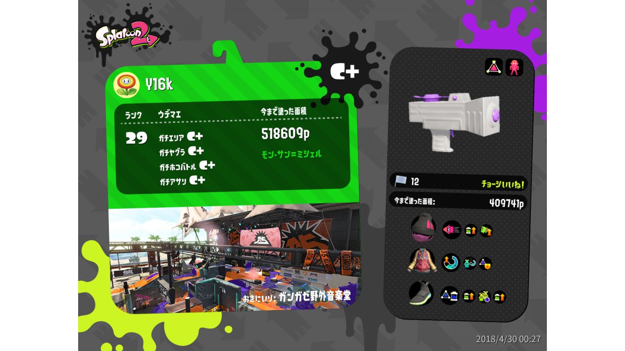 | Name | Weapon | Level | Rank | Inked | k+a/sp | k/d |