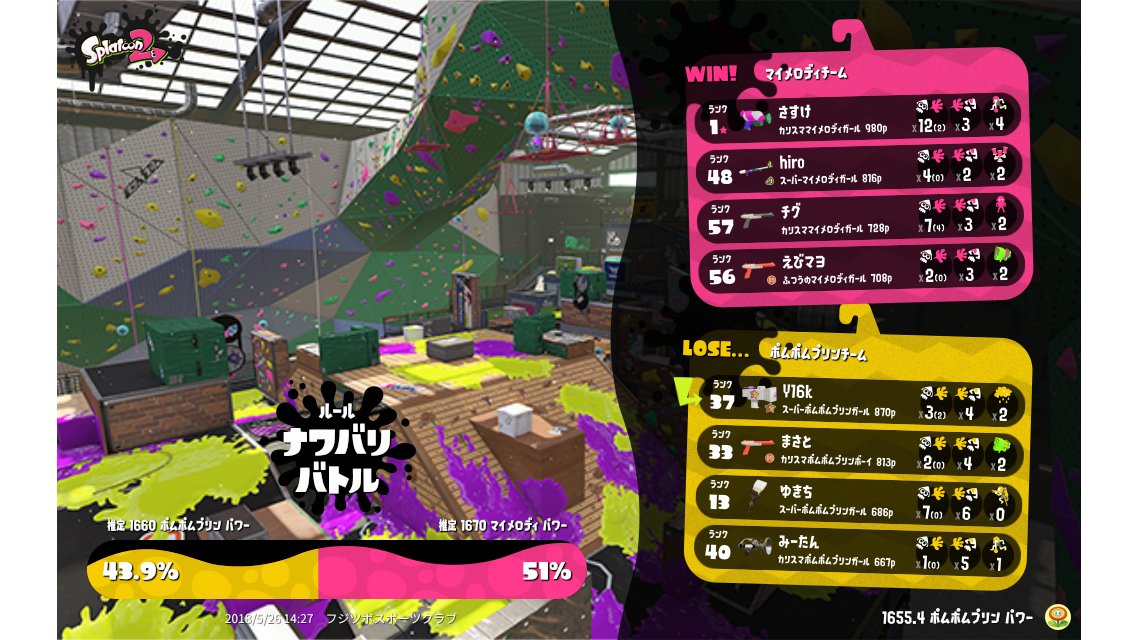 | Splatfest Title | ポムポムプリン Defender 17 → ポムポムプリン Defender 19 | ||||||||||||||||||||||||||||