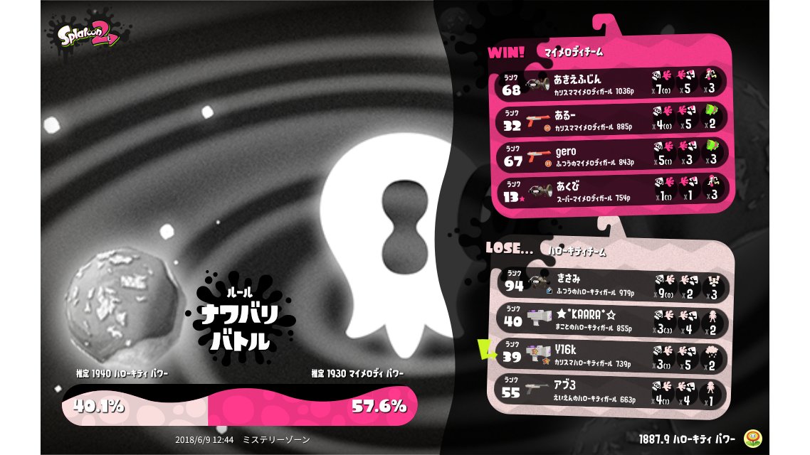 | Splatfest Title | ハローキティ Champion 16 → ハローキティ Champion 18 | |||||||||||||||||||||||||||||||