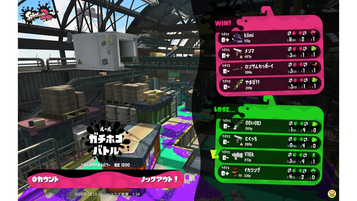 | Name | Weapon | Level | Rank | Inked | k+a/sp | k/d |