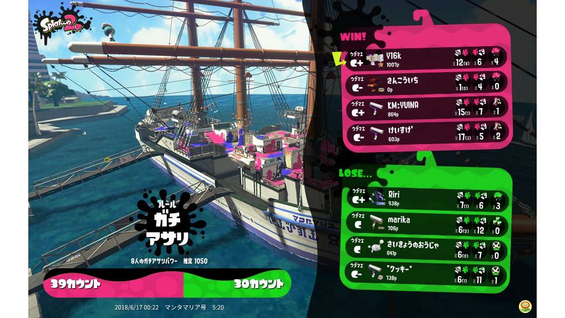 | Name | Weapon | Level | Rank | Inked | k+a/sp | k/d |