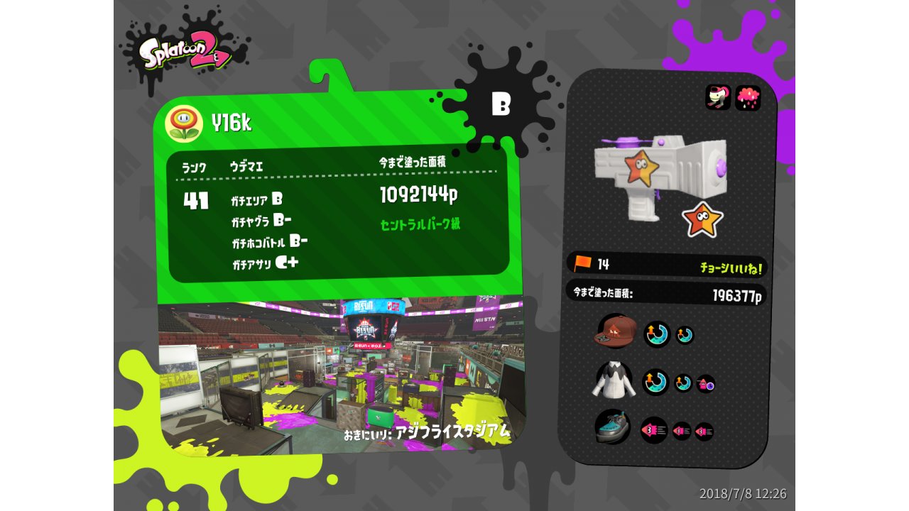 | Name | Weapon | Level | Rank | Inked | k+a/sp | k/d |