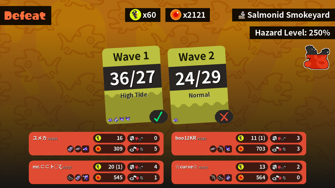 | Boss Salmonid | 7 | 12 | 5 | 13 |