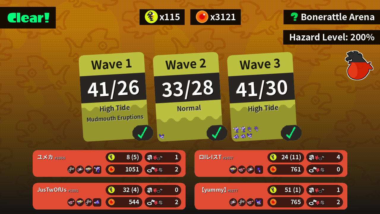| Boss Salmonid | 15 | 14 | 8 | 11 |