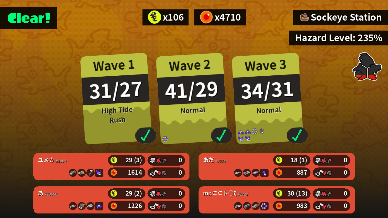 | Weapons | S-BLAST '92 Grizzco Blaster Octobrush | Ballpoint Splatling L-3 Nozzlenose S-BLAST '92 | Grizzco Charger Splat Dualies Grizzco Brella | E-liter 4K Splattershot Nova Splattershot Pro |