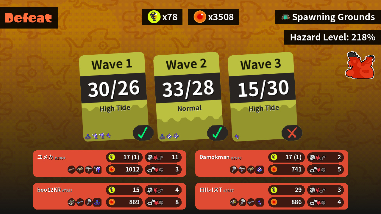 | Boss Salmonid | 17 | 14 | 11 | 12 |