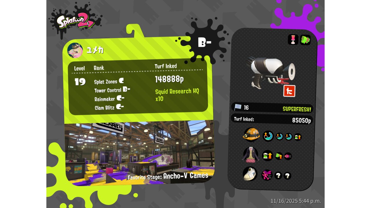 | Mode | Turf War - Regular Battle | ||||||||||||||||||||||||||||||||||