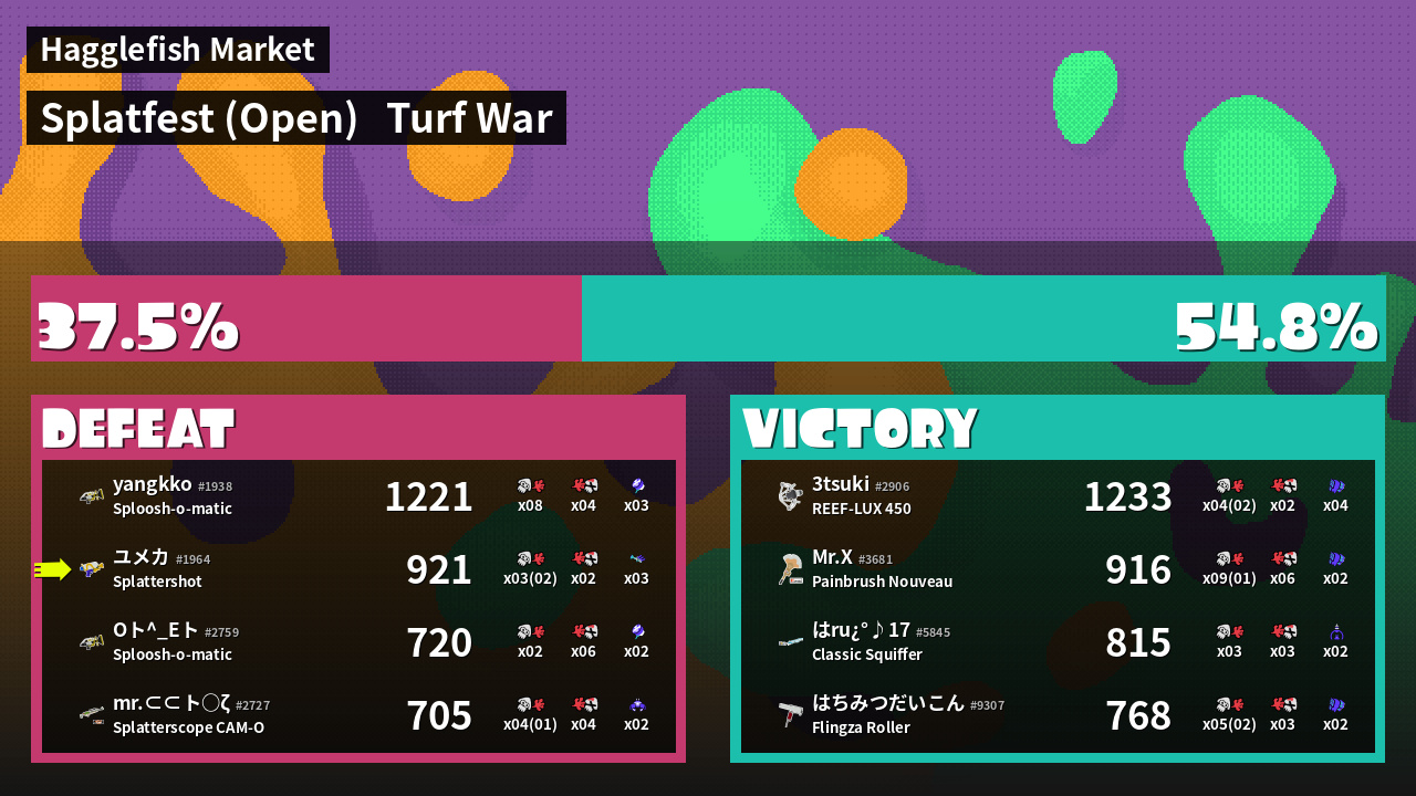 | Medals | #1 Splat Assister #1 Damage Taker #1 Ink Consumer | ||