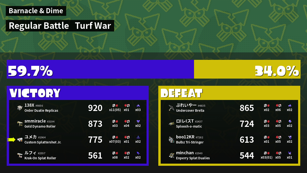 | Mode | Turf War - Regular Battle | ||