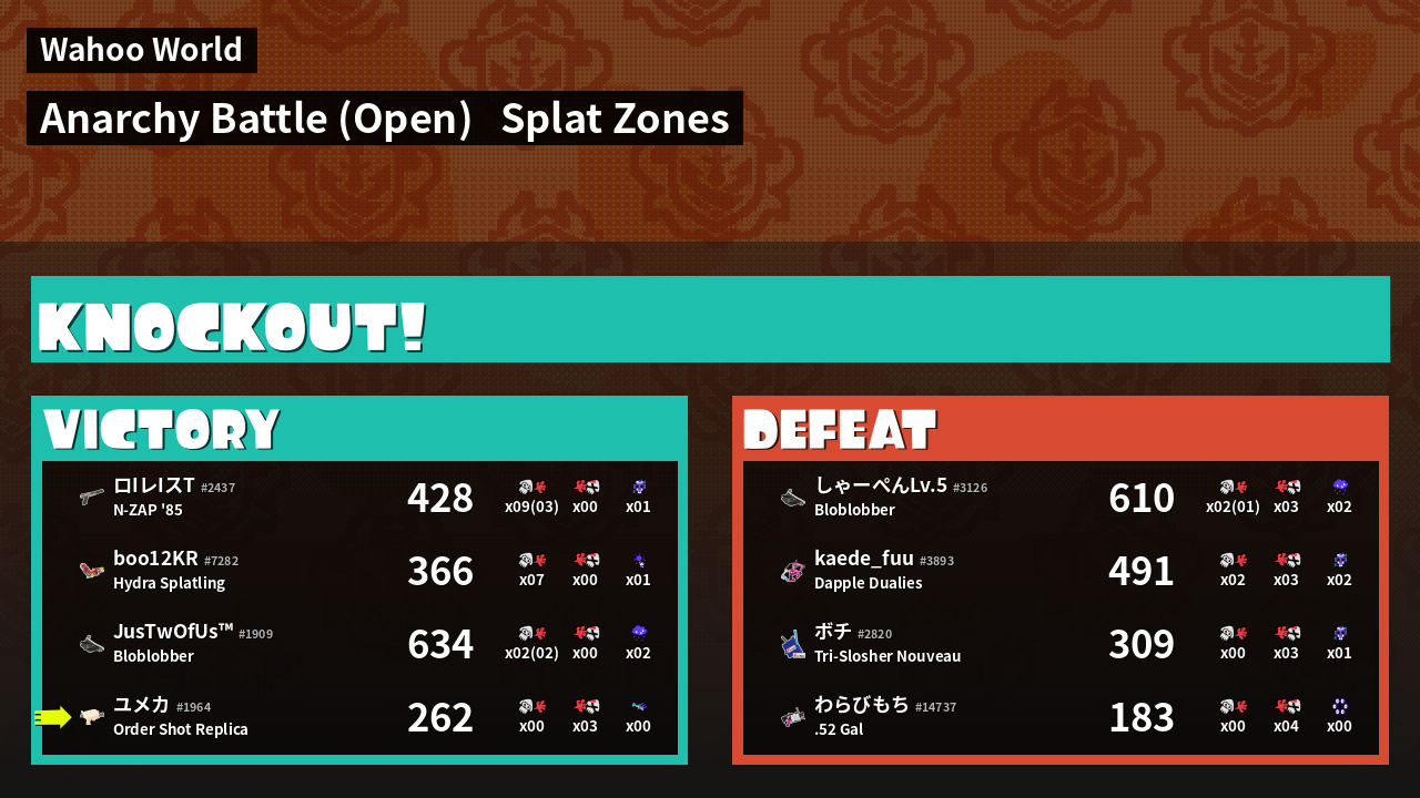 | Mode | Splat Zones - Anarchy Battle (Open) | ||