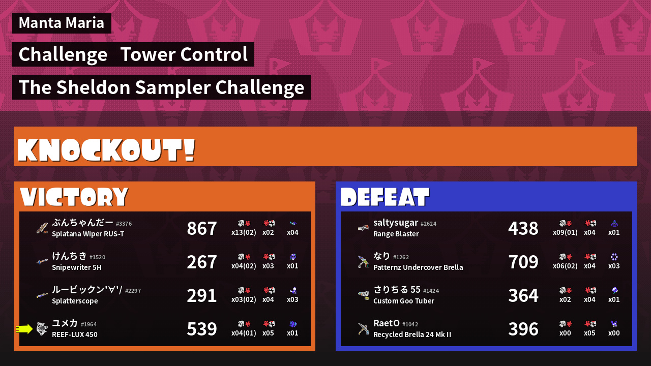 | Challenge | The Sheldon Sampler Challenge Make the most of random weapons! | ||