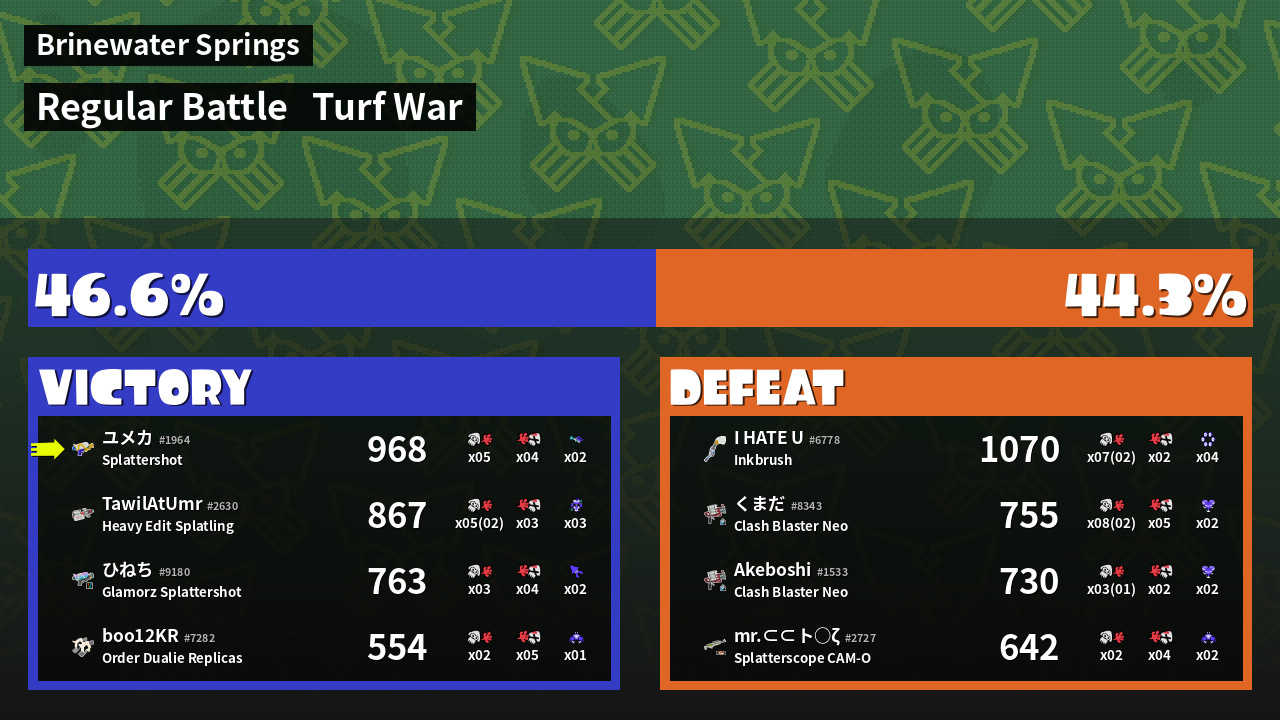 | Mode |    Turf War -   Regular Battle | ||