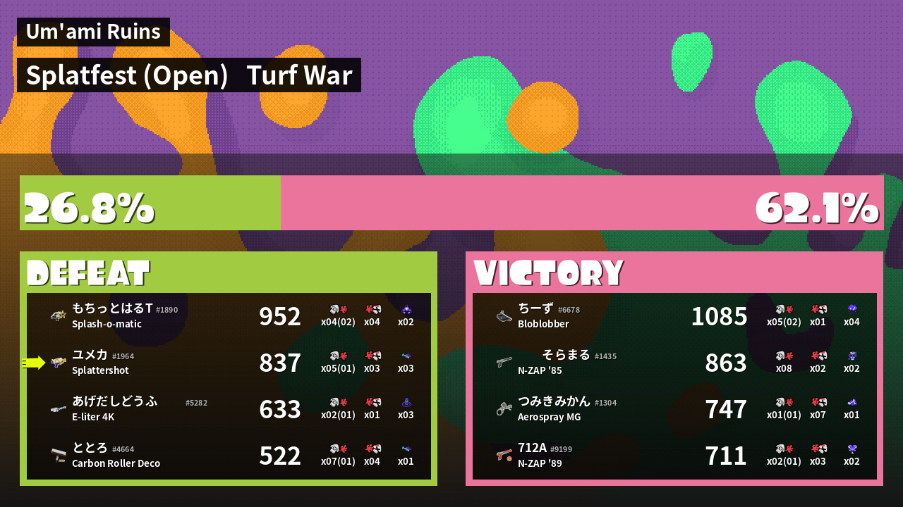 | Weapon | Splattershot ( Suction Bomb / Trizooka) | ||