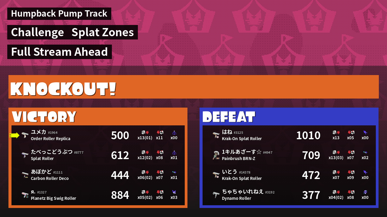 | Medals | #1 Overall Splatter #1 Splat Zone Guard #1 Enemy Splatter | ||