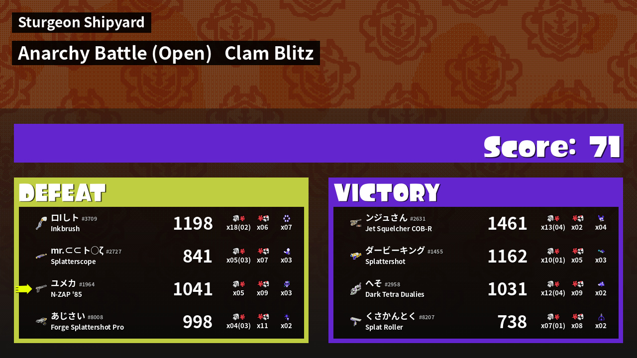 | Mode | Clam Blitz - Anarchy Battle (Open) | ||