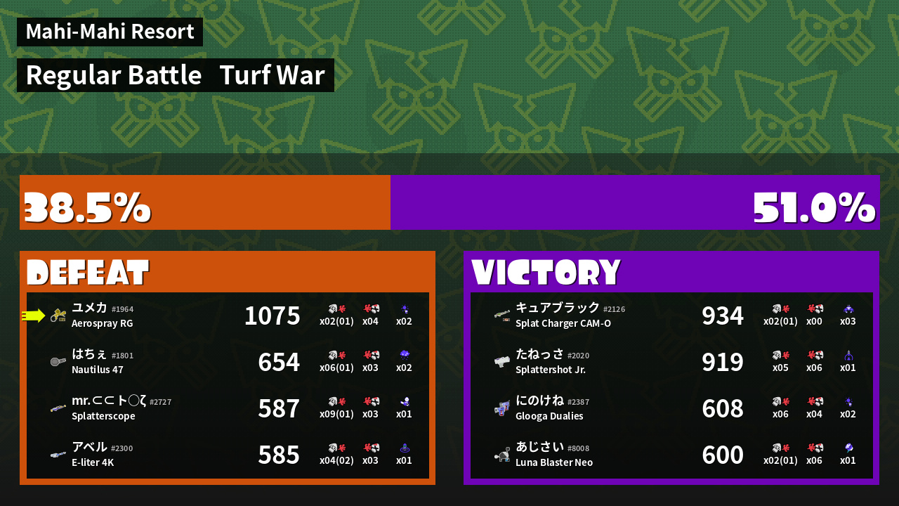| Mode | Turf War - Regular Battle | ||