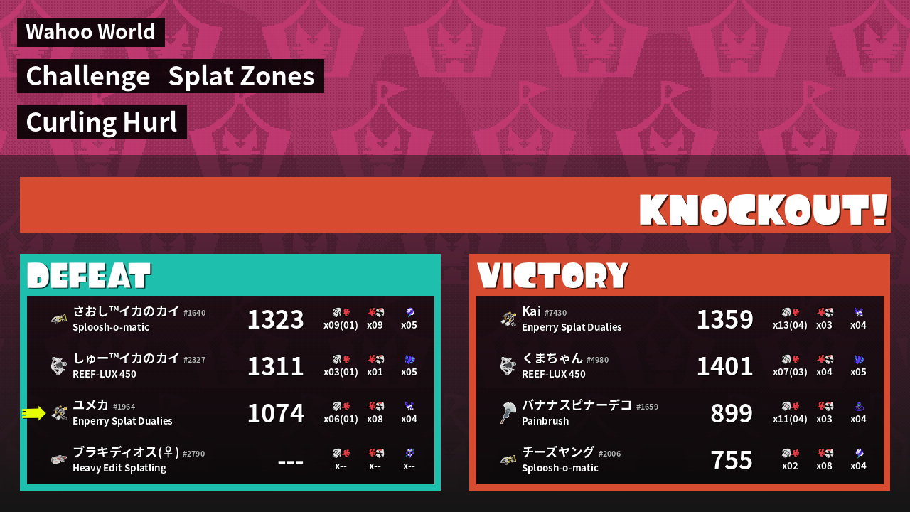 | Medals | #1 Splat Assister #1 Damage Taker #1 Triple Splashdown User | ||