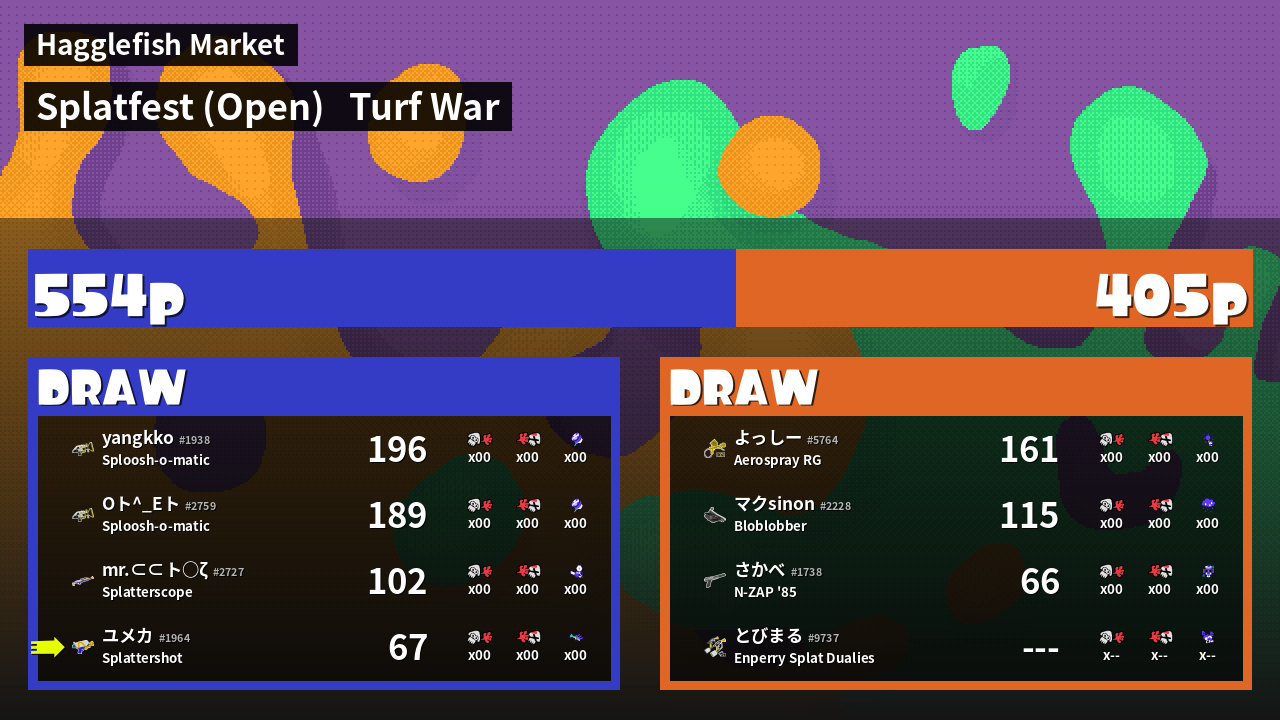 | Weapon | Splattershot ( Suction Bomb / Trizooka) | ||