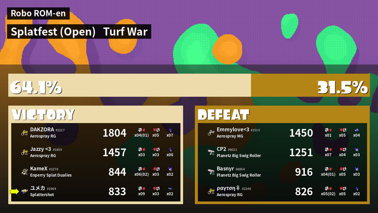 | Medals | #1 Overall Splatter #1 Popular Target #1 Enemy Splatter | ||