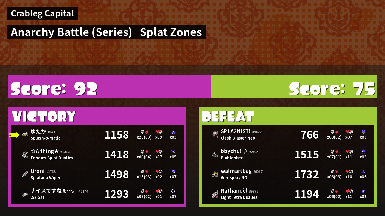 | Mode | Splat Zones - Anarchy Battle (Series) | ||