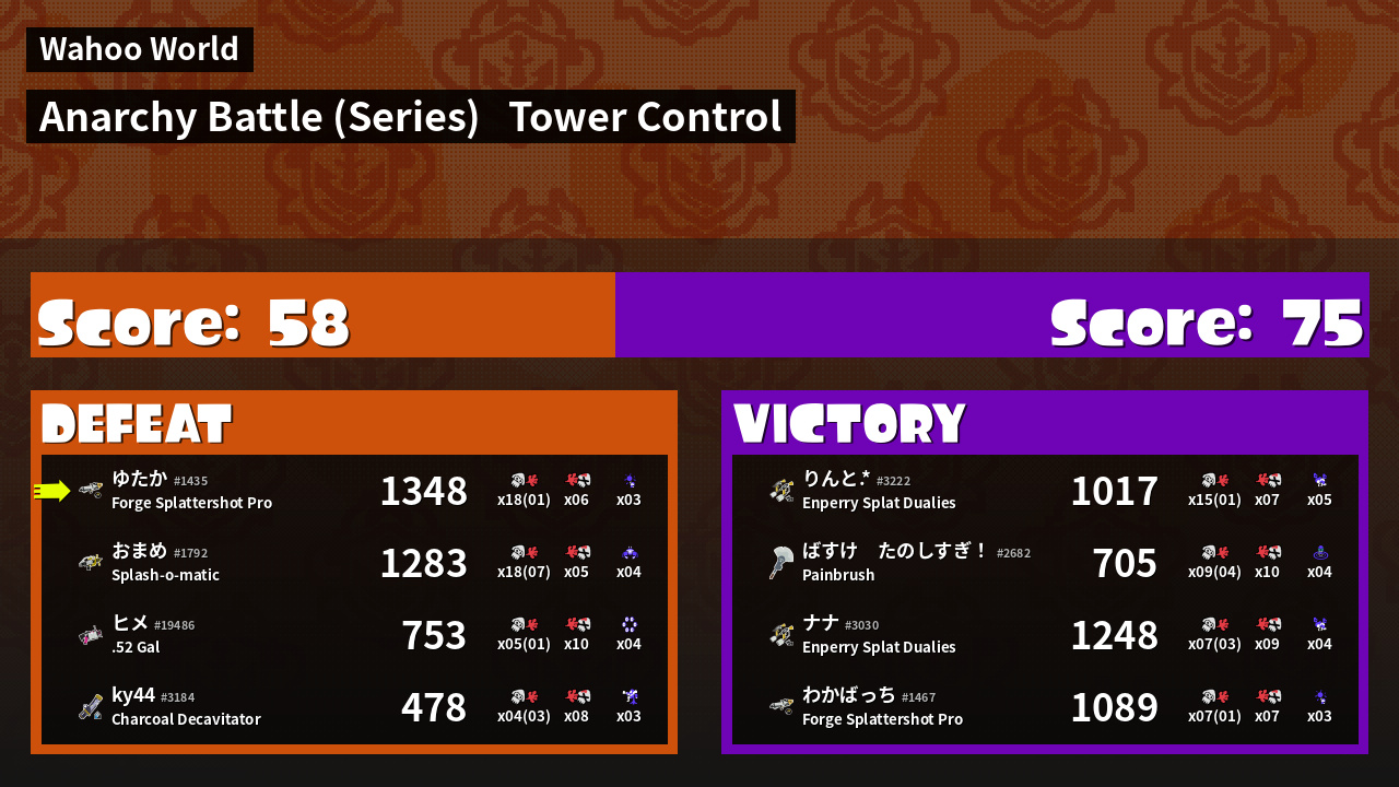 | Mode | Tower Control - Anarchy Battle (Series) | ||