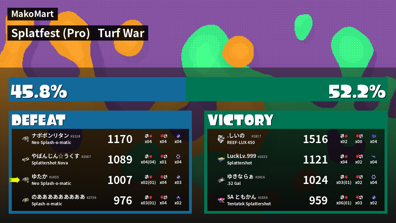 | Mode | Turf War - Splatfest (Pro) | ||