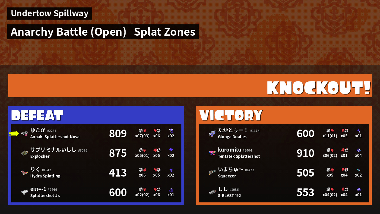 | Mode | Splat Zones - Anarchy Battle (Open) | ||