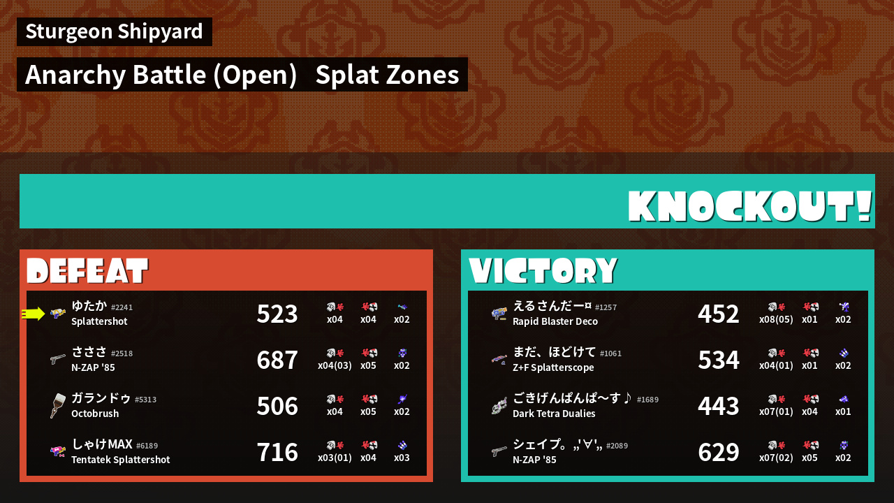 | Mode | Splat Zones - Anarchy Battle (Open) | ||