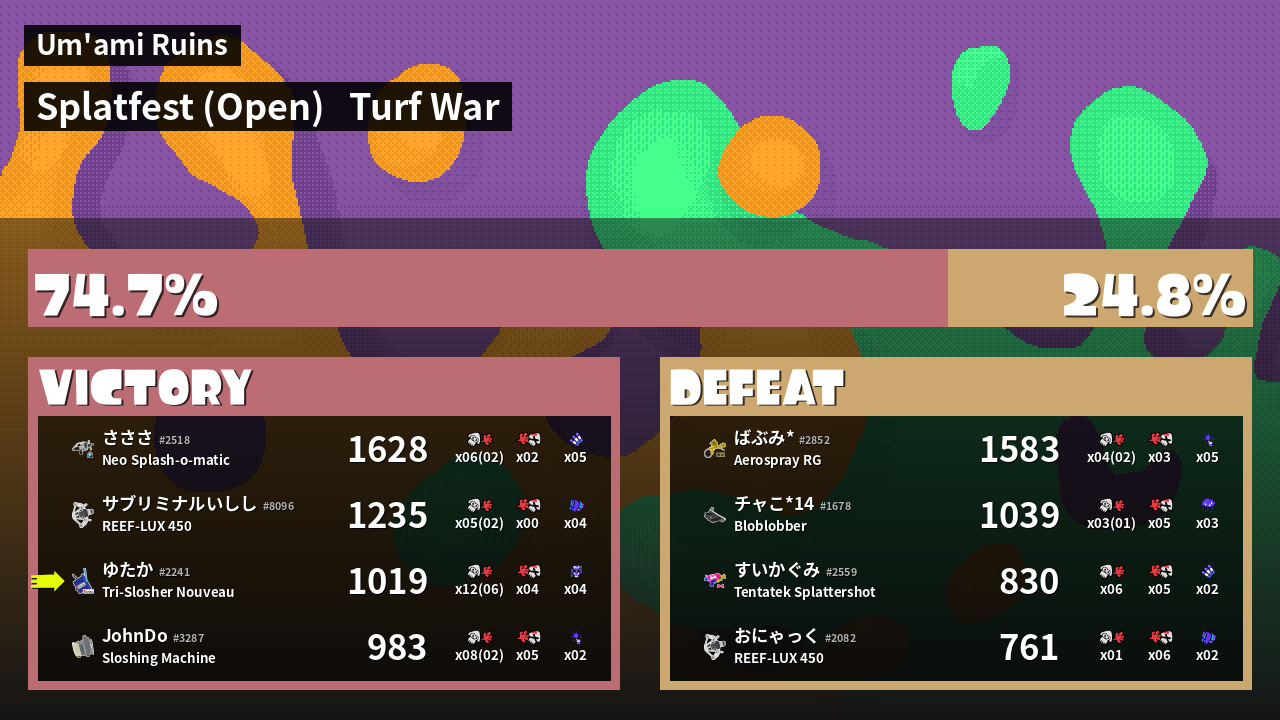 | Medals | #1 Overall Splatter #1 Super Jump Spot #1 Enemy Splatter | ||