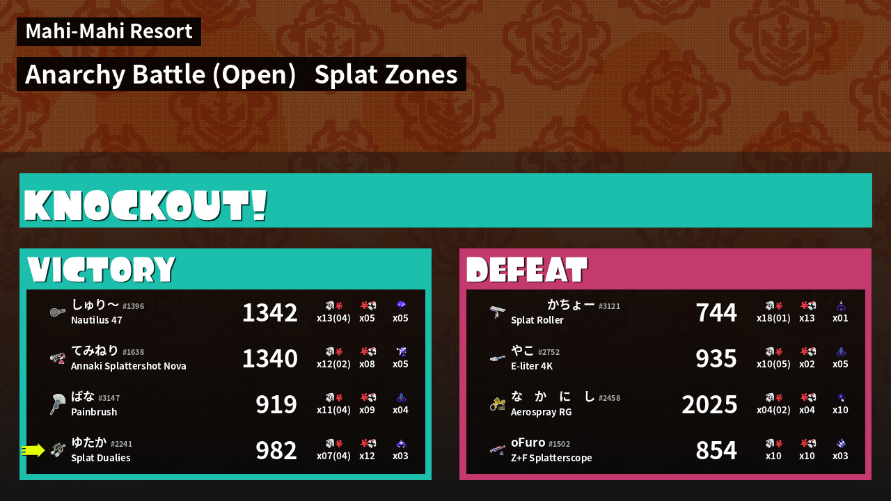 | Mode | Splat Zones - Anarchy Battle (Open) | ||