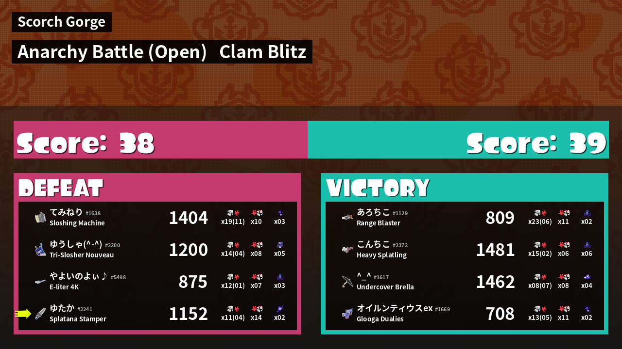 | Mode | Clam Blitz - Anarchy Battle (Open) | ||