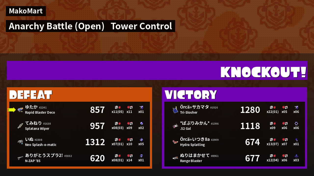 | Mode | Tower Control - Anarchy Battle (Open) | ||